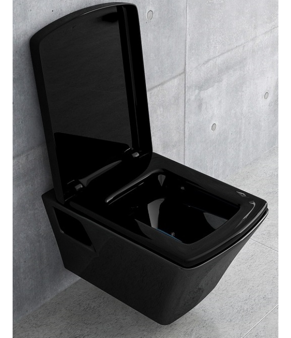 Подвесной ободковый унитаз Volle Teo 13-88-422Black с сиденьем slow-closing, цвет чёрный.
