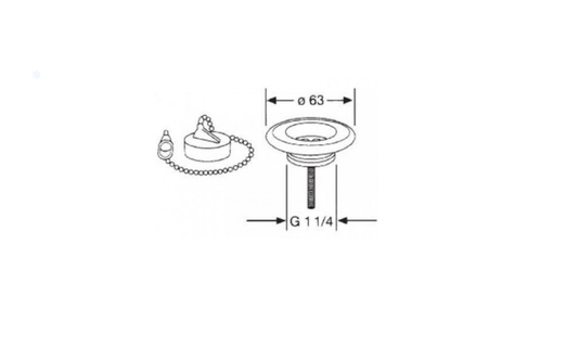 Фильтр вентиля из хромированной никелированной стали диаметром 63 мм. Нижняя часть с резьбой (пластик белый)