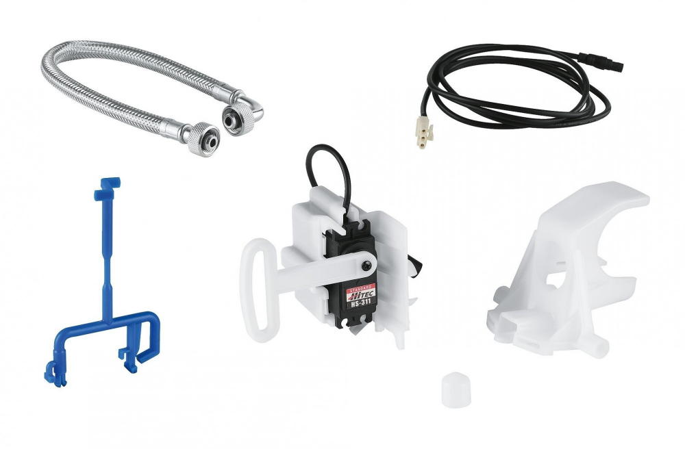 GROHE Sensia® Arena Установочный комплект для автоматического смыва включает в себя: серво привод кронштейн сервопривода кронштейн наполнительного клапана рычаг-рукоятка тяга кабель + колпак гибкий шланг.