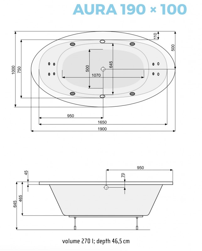 Оригинальная серия акриловых ванн PoolSpa Aura разработана для тех, кто ценит комфорт и привлекательный дизайн. Толщина акрила, используемого для изготовления ванн Aura, составляет 4 мм. Это позволяет сформировать легкую и надежную конструкцию, идеальную для монтажа гидромассажного оборудования. Каждая ванна имеет отверстие слива с клапаном, расположенное по центру. Овальное почти плоское дно меньшего диаметра создает удобное внутренне пространство ванны. В такой ванной удобно и безопасно не только сидеть или лежать, но и принимать душ.