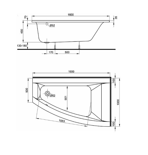 Ванна акриловая асимметричная Kolo Clarissa 160х100 правосторонняя XWA0860000
