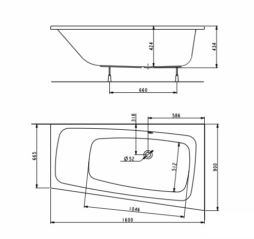 Ванна акриловая асимметричная Kolo Split 160х90 правосторонняя XWA1660000