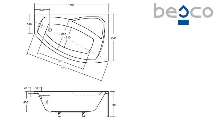 Ванна акриловая Besco Rima 140х90 см правосторонняя глянцевый белый