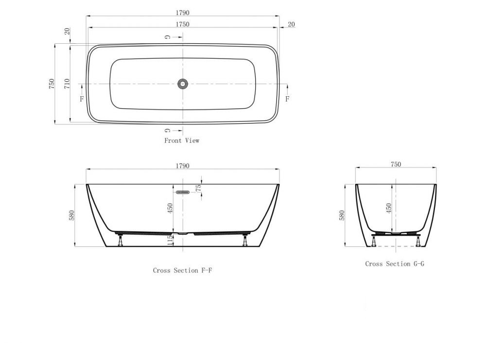 Ванна акриловая Devit Iven 179х75 см отдельностоящая с ножками белый 18075141