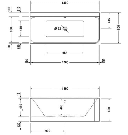 - Размер ванны 1800х800х460 мм