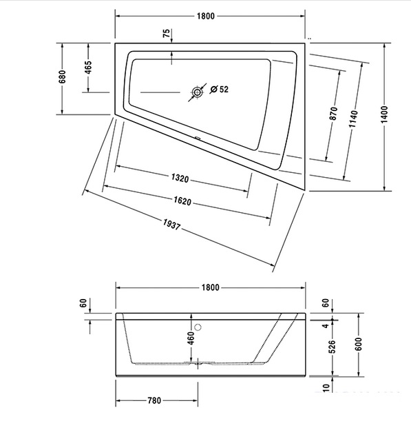 1) Ванна акриловая Duravit Paiova Combi-Sistem E гидромассажная 180х140 см белый