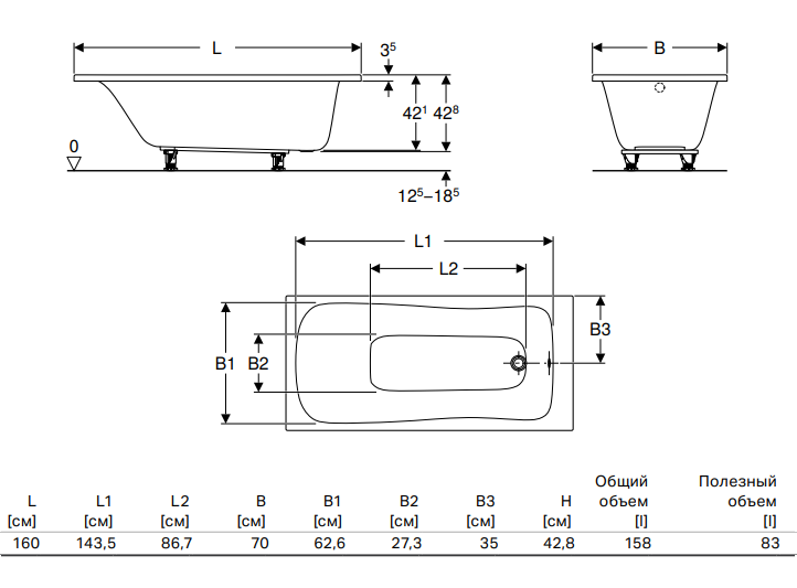 1) Ванна акриловая Geberit Renova 160х70 белый