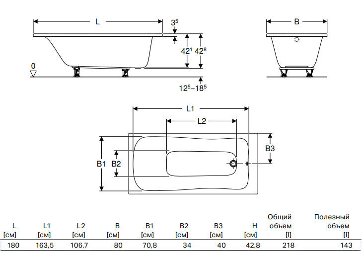 Ванна акриловая Geberit Renova 180х80 с ножками белый