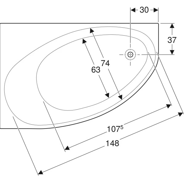 Ванна акриловая Geberit Selnova 160x100 выпуск справа с ножками белый 554.274.01.1