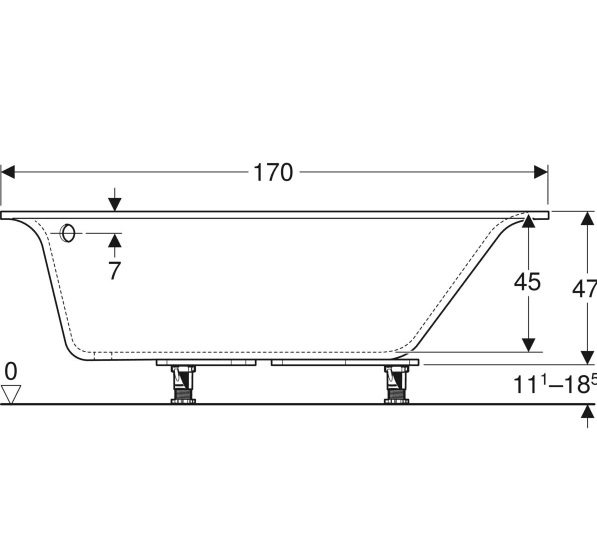 Ванна акриловая Geberit Selnova Square 170x105 выпуск слева с ножками белый 554.291.01.1