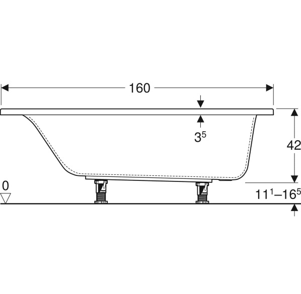 Ванна акриловая Geberit Selnova Square прямоугольная 160x75 с ножками белый 554.383.01.1