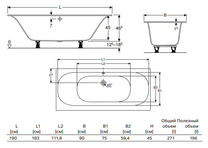 Ванна акриловая Geberit Soana Slim rim Duo 190х90 с ножками белый