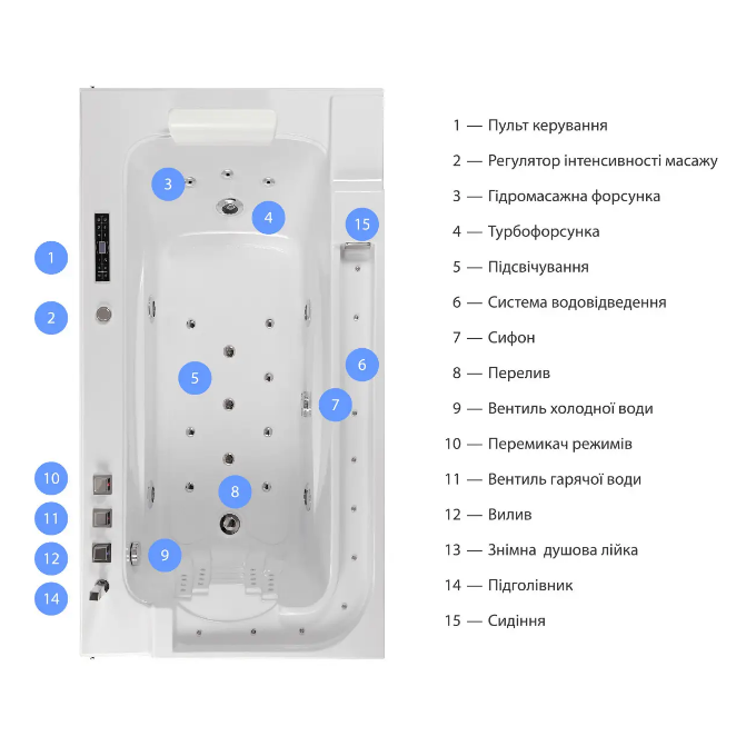 Ванна акриловая Iris 170х90 см с гидромассажем и аэромассажем белый