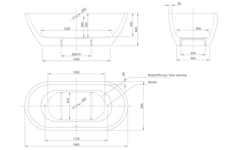 Ванна акриловая Knief Form 190x90 см с щелевым переливом белый глянцевый