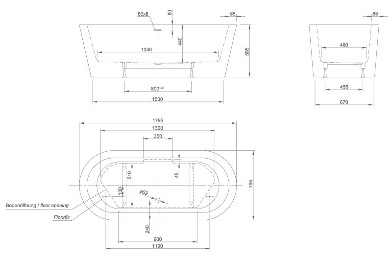 1) Ванна акриловая Knief Hot 180x80 см