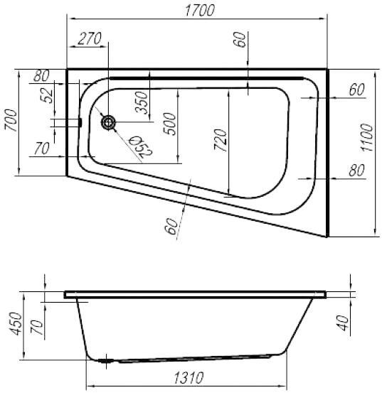 1) Ванна акриловая Kolpa-san Beatrice-L ассиметричная угловая левая белый