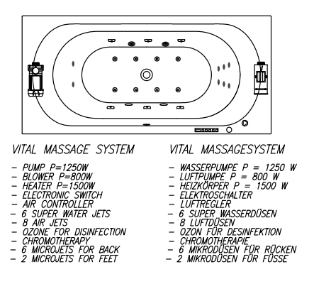 с массажной системой VITAL+MIKRO (массаж спины), с установленной панелью