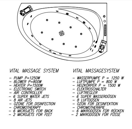 с массажной системой VITAL+MIKRO (массаж спины), с установленной панелью