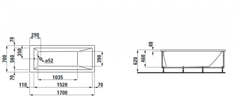 Ванна акриловая Laufen Pro 170х70 см угловая правая с панелью с гидромассажем белый H2309550006351
