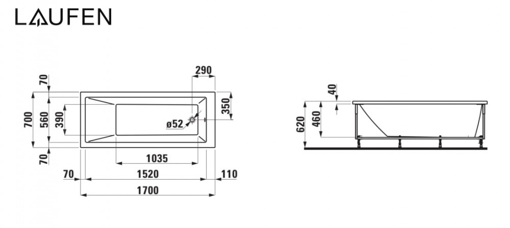 Ванна акриловая Laufen Pro 170х70 см угловая левая с панелью и аэромассажем белый H2309560006051