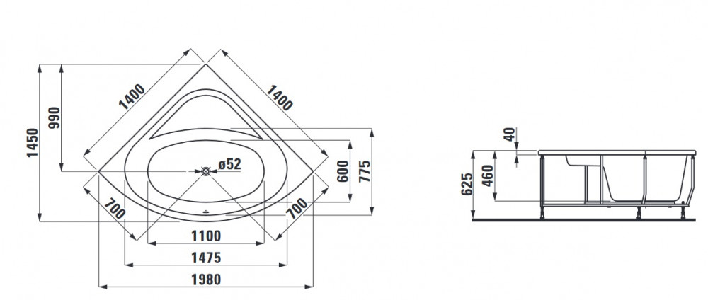 Ванна акриловая Laufen Solutions 140х140 см угловая с LED-освещением белый H2425010006151