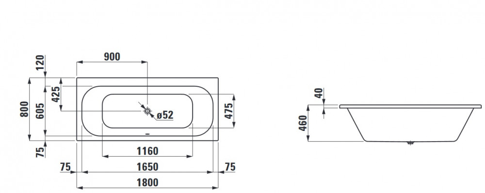 Ванна акриловая Laufen Solutions 180х80 см встраиваемая прямоугольная белый H2245000000001