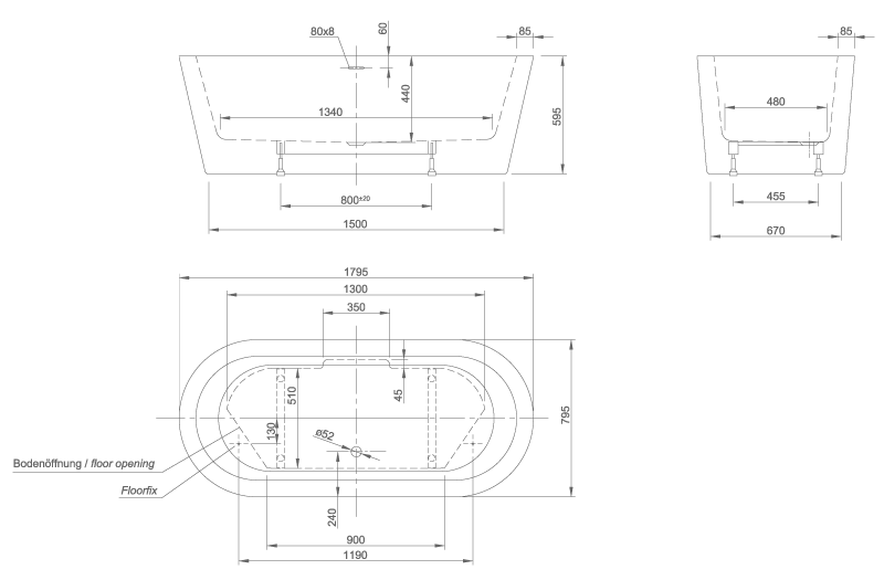 1) Ванна акриловая отдельностоящая Knief Hot 180x80 см белый