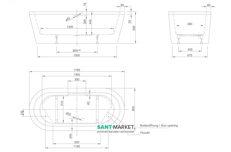 Ванна акриловая отдельностоящая Knief Cool 180х80 0100-082-06+0100-091-06