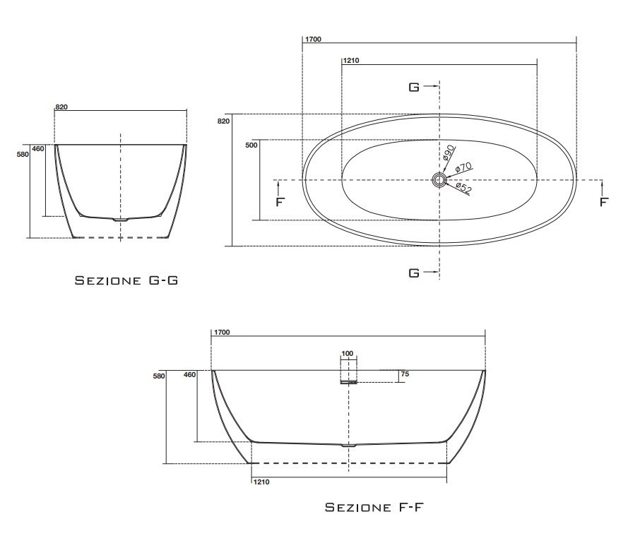 Ванна акриловая овальная Kerasan Flo свободностоящая 170х82 белая 742901