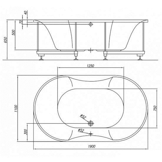 1) Ванна акриловая овальная Kolpa San Gloriana 190x110 белый