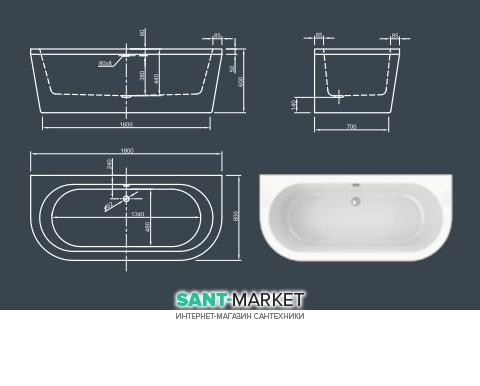 - Ванна акриловая пристенная Knief Dream Wall 180х80х60 белая 0100-252-06