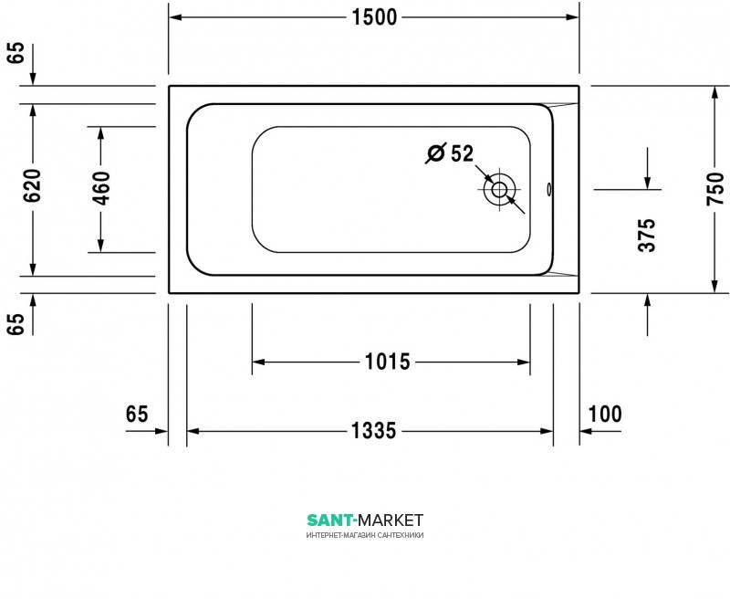 Ванна акриловая прямоугольная Duravit D-Code 150х75х40 белая 700095000000000