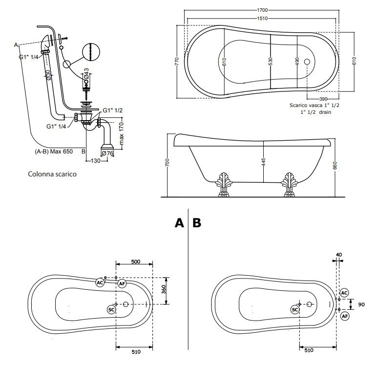 Ванна акриловая овальная Kerasan Retro 170х77 белая 105501