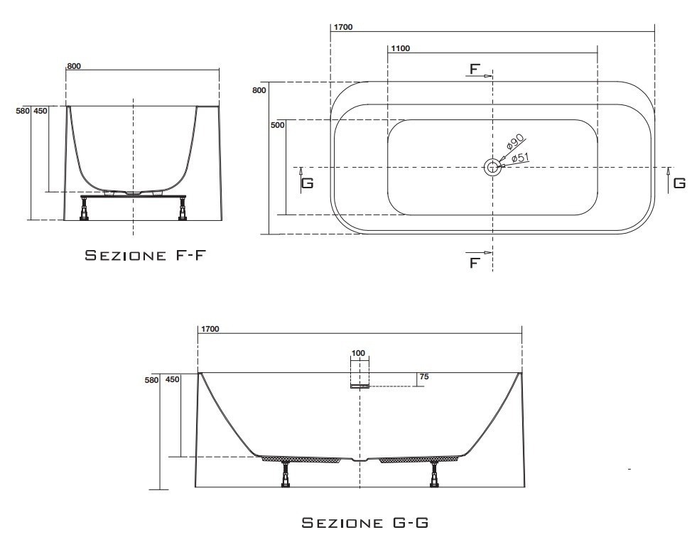 Ванна акриловая прямоугольная Kerasan Tribeca свободностоящая 170х80 белая 743001
