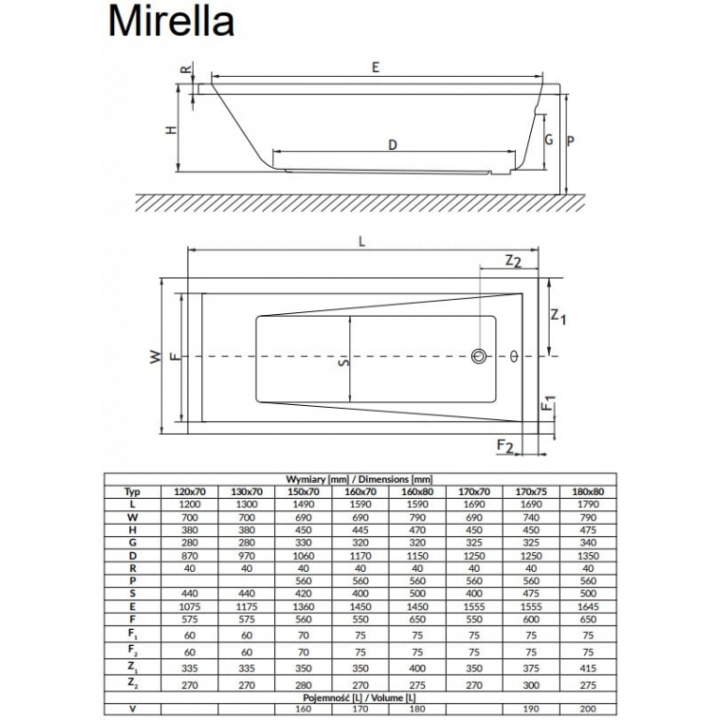 Ванна акриловая Radaway Mirella 140x70 см пристенная белый WA1-48-140x070