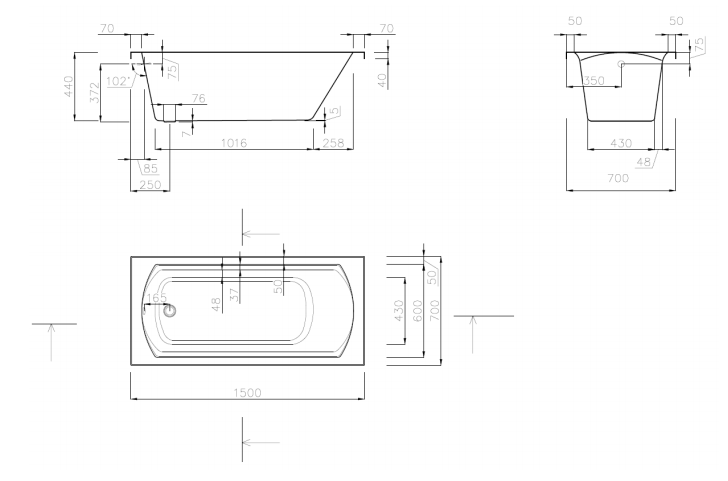 Ванна акриловая Ravak Domino II 150 х 70 XA40000036