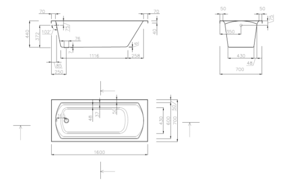 Для монтажа ванны 160 необходимо использовать опору универсальную Campanula 170х75, Sonata, Nerida, Formy 01 170 XY00030000