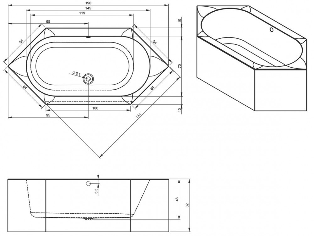 - Диаметр слива: 5.1 см