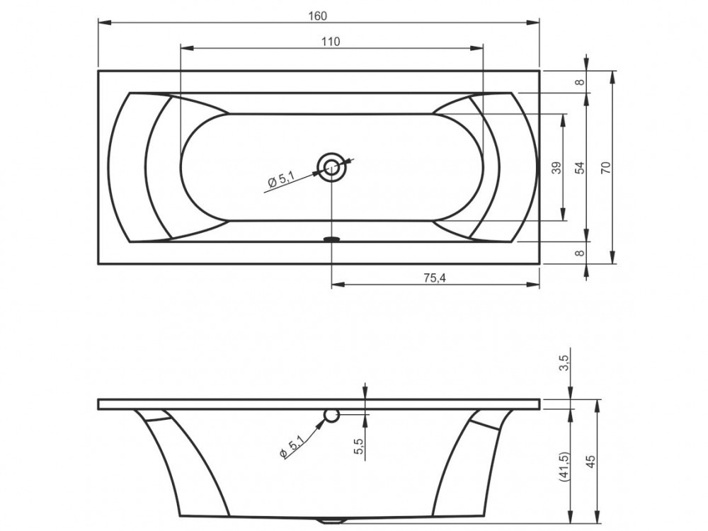 1) Ванна акриловая Riho Lima прямоугольная 160x75 белый