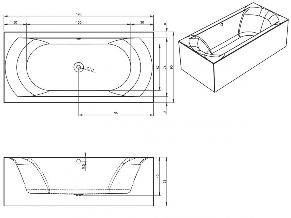 1) Ванна акриловая Riho Linares Plug & Play 190x90 правая с панелью