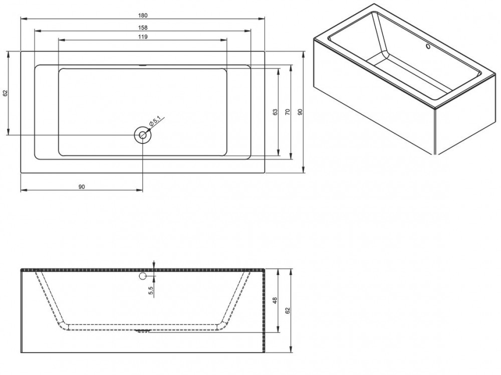 1) Ванна акриловая Riho Lugo Plug & Play прямоугольная 180x90 правая с панелью