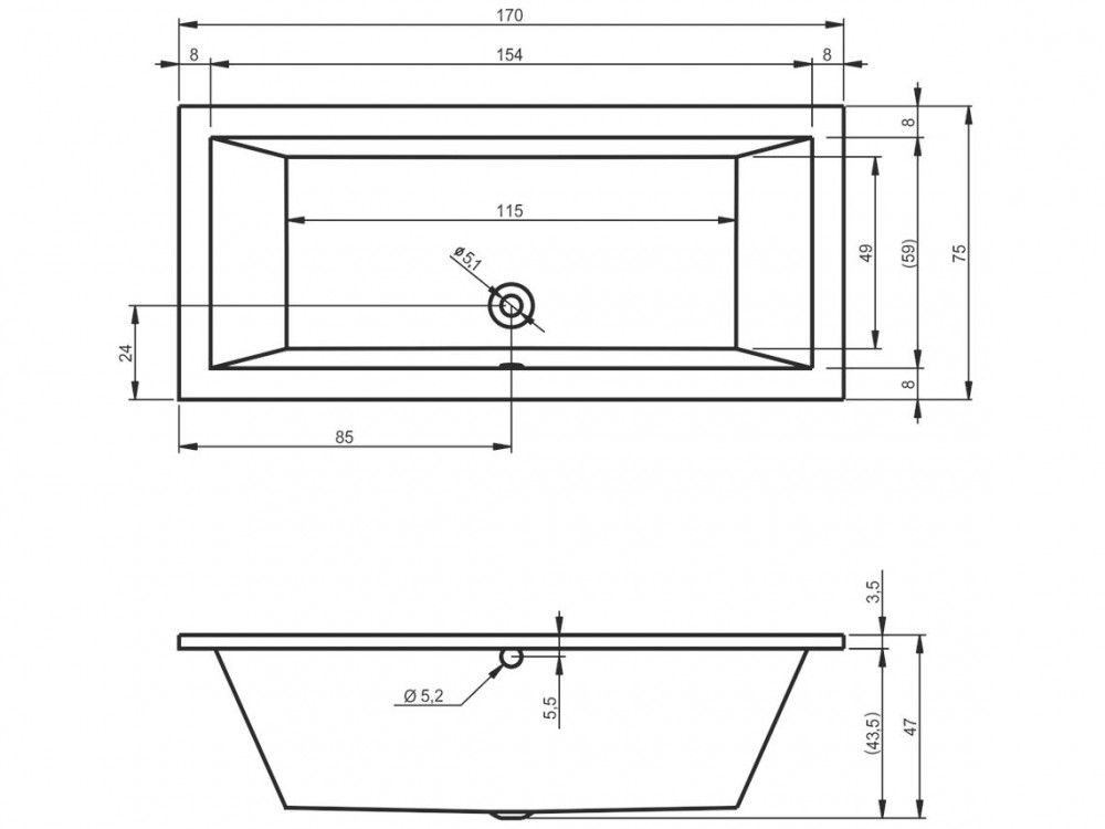 Ванна акриловая Riho Lusso прямоугольная 170x75 белый BA1800500000000