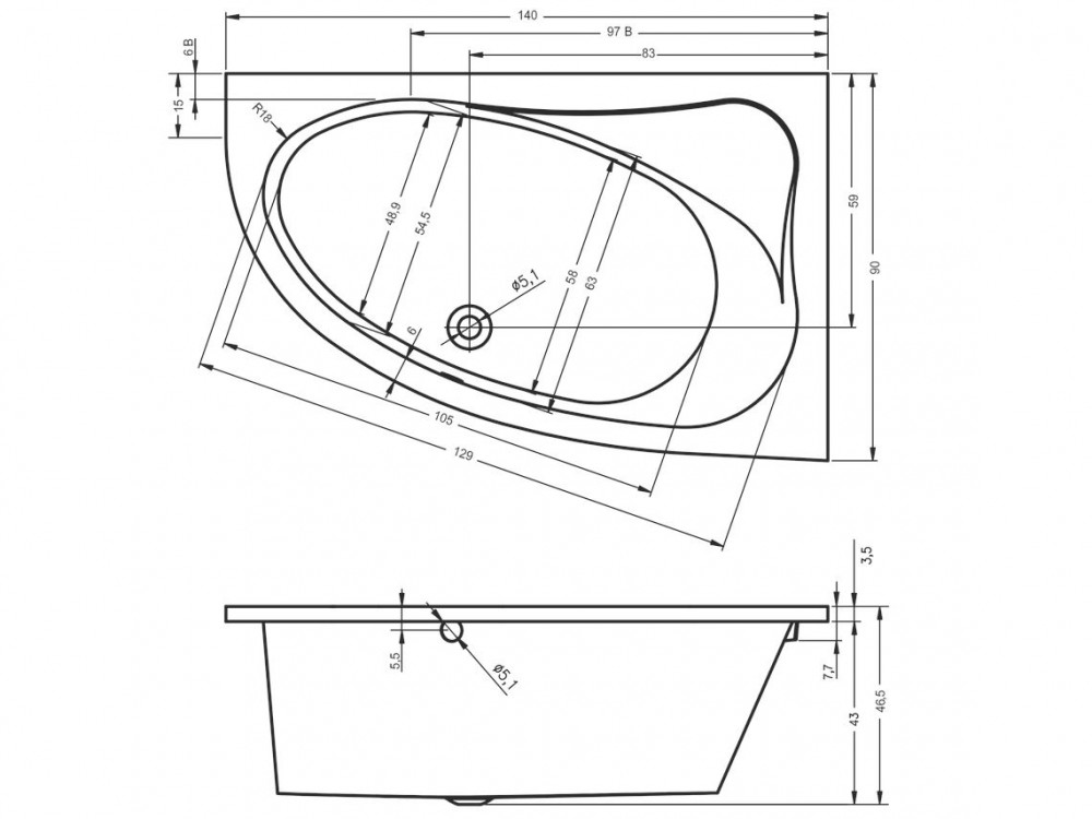 Ванна акриловая Riho Lyra асимметричная 140х90 левая белый BA6600500000000