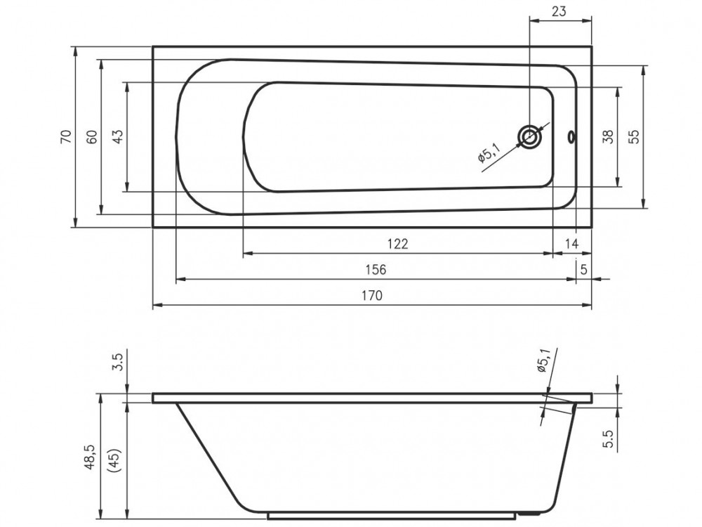 Ванна акриловая Riho Orion прямоугольная 170x70 белый BC0100500000000
