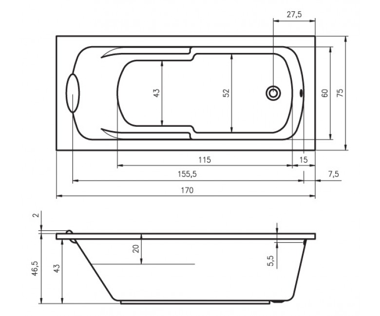 - Дополнительная информация: возможно оснащение гидромассажной системой, аэромассажной системой (за дополнительную стоимость)