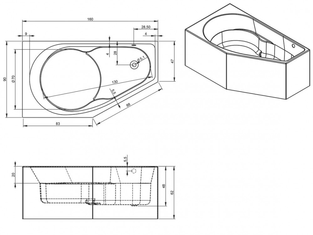 - Диаметр слива: 5.1 см