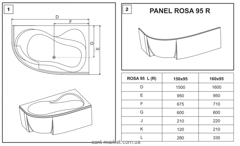 Маленькие размеры, большие возможности. Объединяет в себе все качества больших ванн Rosa, но благодаря ширине 95 cм поместится и в маленьких ванных комнатах. Несомненно, во время купания ванны Rosa обеспечивают удобное лежание, а если их еще дополнить шторой, то они перевоплотятся в широкий душевой уголок. Их душевая часть имеет широкое плоское дно и интегрированное сиденье, что позволяет принимать душ стоя. Усовершенствовать купание в ванне Rosa Вам помогут мягкий подголовник или практичные ручки для удобного поднятия из ванны. К ваннам Rosa можно докупить и другие составляющие концепции Rosa: умывальник, мебель, смесители, штору и иные аксессуары, и все это в едином дизайне, повторяющем форму самой ванны.