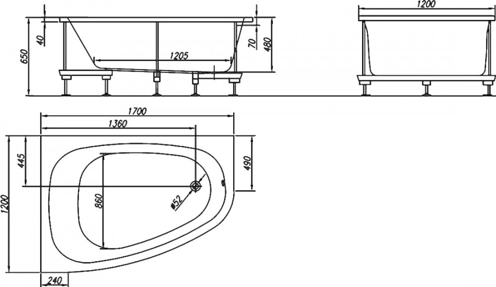 1) Ванна акриловая угловая асимметричная встраиваемая Kolpa-San Chad R 170х120 см белый
