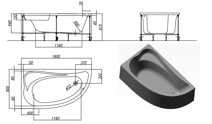 Kolpa San Calando 160 x 90 R - встраиваемая акриловая ванна с великолепным сочетанием дизайна и габаритов. Ванна Колпасан Каландо 160 х 90 для нестандартных решений, предаст неповторимый дизайн вашей ванной комнате. Удобный выступ в нутрии ванны может использоваться как сидение или подставка. Небольшое пространство в ванне для гурманов и любителей принять ванну и получить наслаждение. В акриловую ванну как опцию на заводе Колпасан доукомплектовать гидро массажной системой по выбору клиента. Ванна инсталлируется на каркас или ножки. Опционально врезать смеситель или душевую гарнитуру. Ванна габаритами: длинной 160 см, шириной 90 см и высотой 44 см, относится к классу угловых ванн. При производстве используется материал, английский белоснежный акрил толщиной 5 мм фирмы Lucite. Гарантия на ванны 10 лет от словенского производителя Kolpa-san.