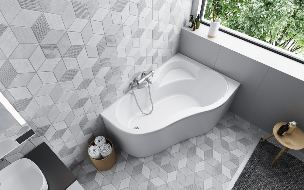 Оригинальный стиль исполнения асимметричной акриловой ванны, у которой видимая сторона изготовлена в виде волны вполне может стать украшением Вашей ванной комнаты. Помимо красивого внешнего вида, этот дизайн еще и принесет Вам комфортное принятие душа, так как ванна выпускается в относительно небольших размерах.